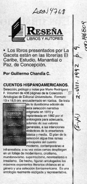 Cuentos hispanoamericanos [artículo] Claudio Solar.