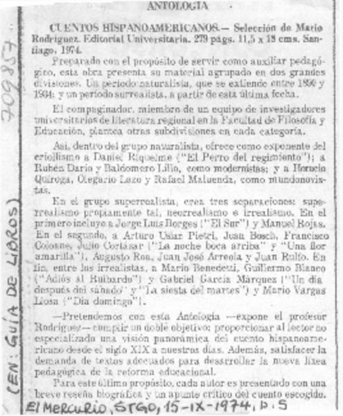 Autores chilenos - Rojas, Manuel - Rodríguez Fernández, Mario - Cuentos hispanoamericanos - Ercilla (Santiago, Chile)--