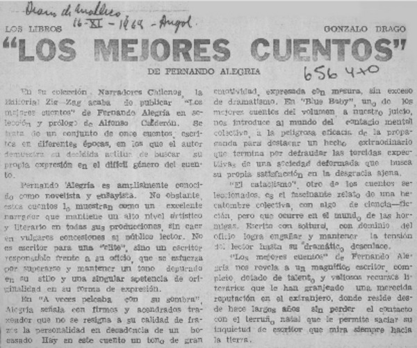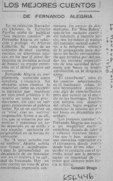 Los mejores cuentos de Fernando Alegría [artículo] Gonzalo Drago.
