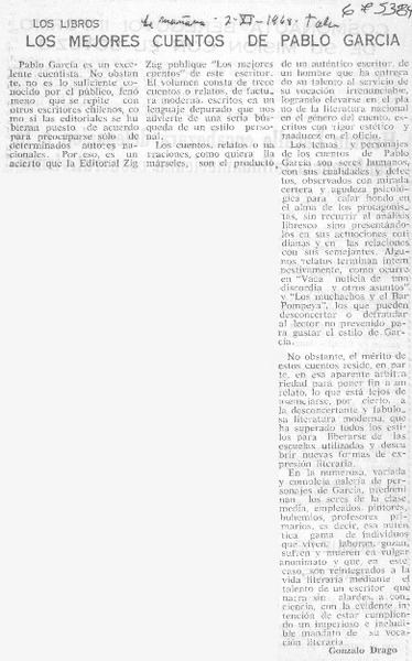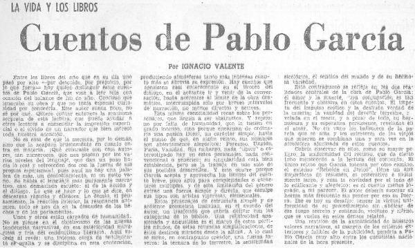 Cuentos de Pablo García [artículo] Ignacio Valente.
