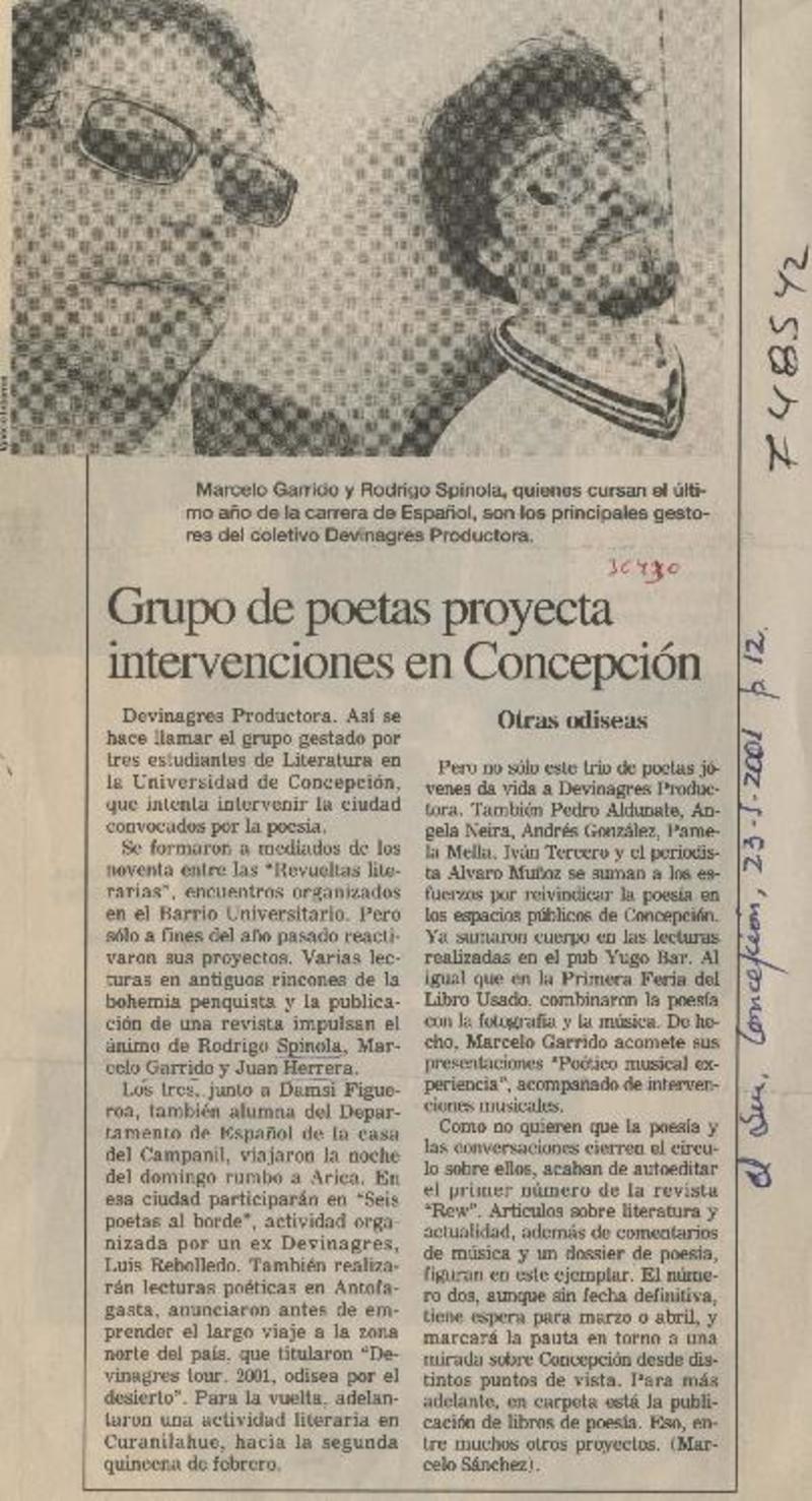 Grupo de poetas proyecta intervenciones en Concepción. [artículo]