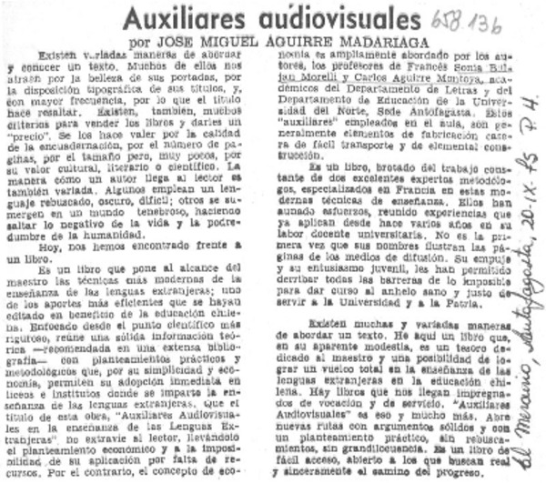 Auxiliares audiovisuales [artículo] José Miguel Aguirre Madariaga.
