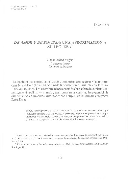 De amor y de sombra [artículo] Eliana Moya-Raggio.