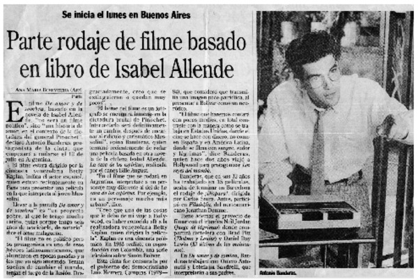 Parte rodaje de filme basado en libro de Isabel Allende [artículo] Ana María Echeverría.