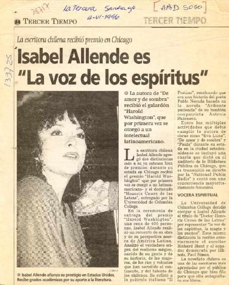 Isabel Allende es "La voz de los espíritus" [artículo].
