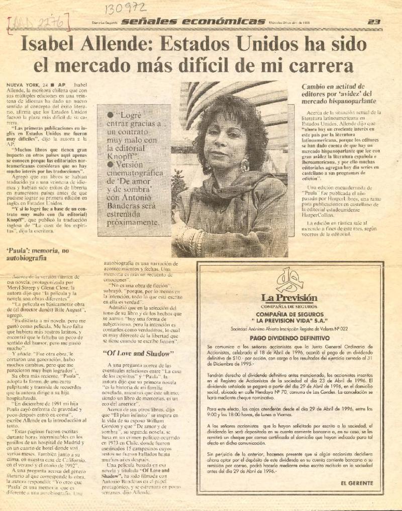 Isabel Allende: Estados Unidos ha sido el mercado más difícil de mi carrera [artículo].