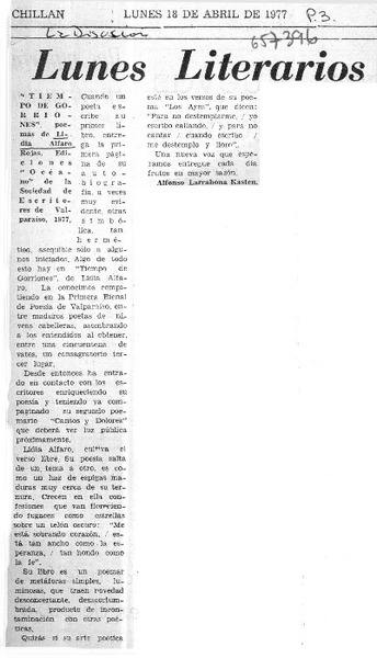 Lunes literarios [artículo] Alfonso Larrahona Kasten.