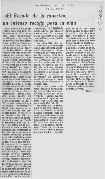 "El recado de la muerte", un intenso recado para la vida [artículo] Ego.