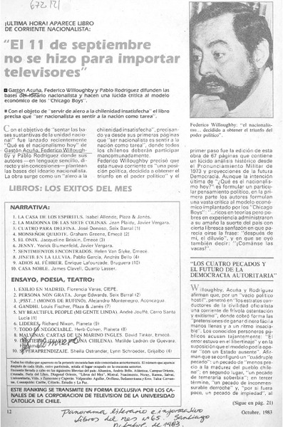 Autores chilenos - Rodríguez Grez, Pablo - Acuña, Gastón - ¿Qué es el nacionalismo hoy? - Willoughby M., Federico
