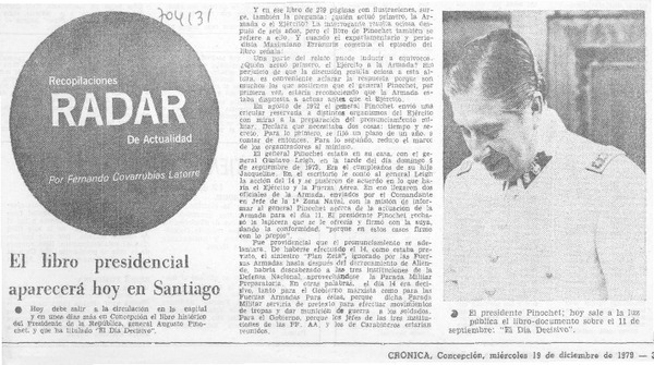 El libro presidencial aparecerá hoy en Santiago [artículo] Fernando Covarrubias Latorre.