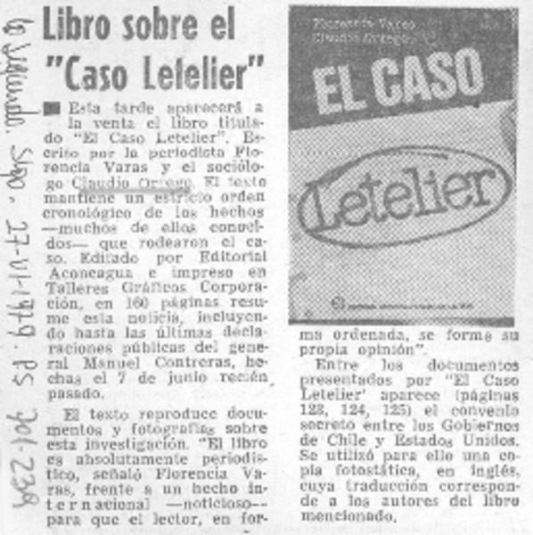 Libro sobre el "Caso Letelier". [artículo]