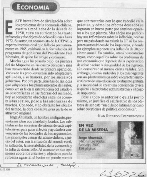 En vez de la miseria [artículo] Juan Ricardo Couyoumdjian