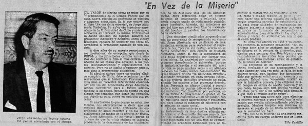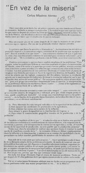 En vez de la miseria [artículo] Carlos Mladinic Alonso.