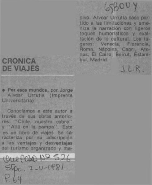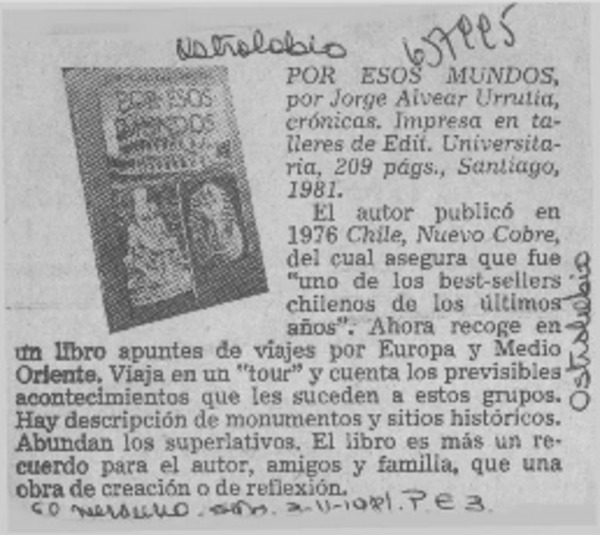 Autores chilenos - Por esos mundos - Alvear Urrutia, Jorge