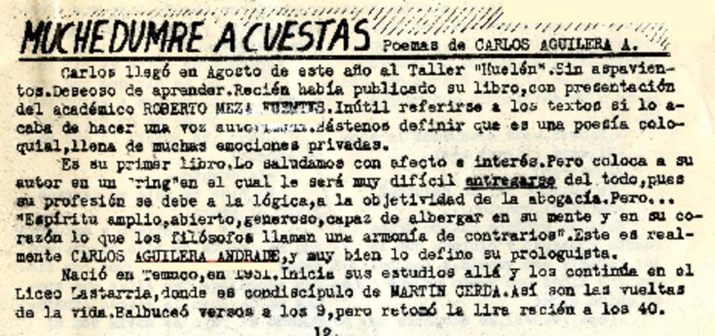 Muchedumbre a cuestas - Aguilera Andrade, Carlos - Autores chilenos