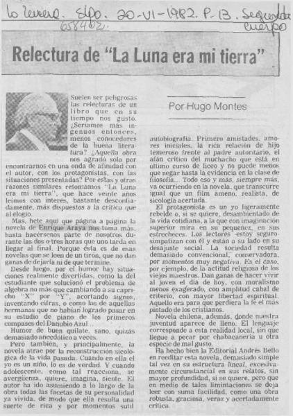 Relectura de "La luna era mi tierra" [artículo] Hugo Montes.