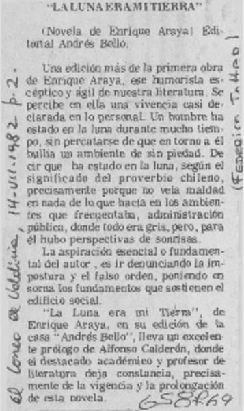 "La luna era mi tierra" [artículo] Juan Gabriel Araya.