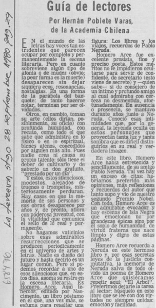 Guía de lectores [artículo] Por Hernán Poblete Varas, de la Academia chilena.