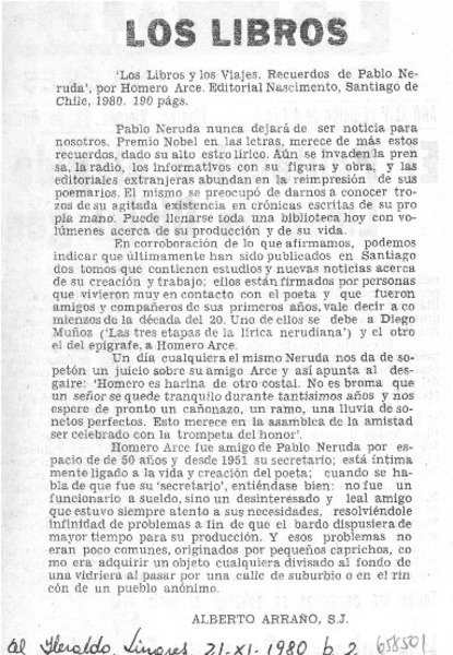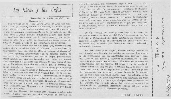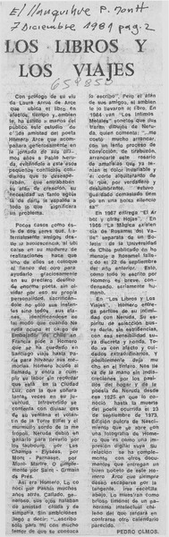 Los libros y los viajes, recuerdos de Pablo Neruda [artículo] Arraño Acevedo, Alberto.