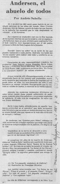Andersen, el abuelo de todos [artículo] Andrés Sabella.