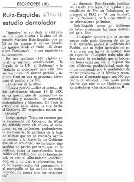Autores chilenos - Ruiz Esquide, Mariano - Socialismo traicionado