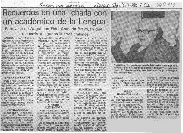 Recuerdos en una charla con un académico de la lengua [artículo] Antonio Mihoevic Peric.