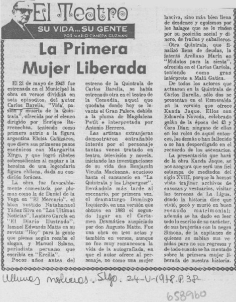 La primera mujer liberada [artículo] Mario Cánepa Guzmán.