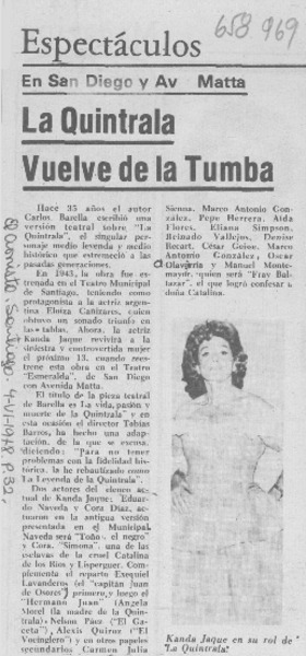 La Quintrala vuelve de la tumba. [artículo]