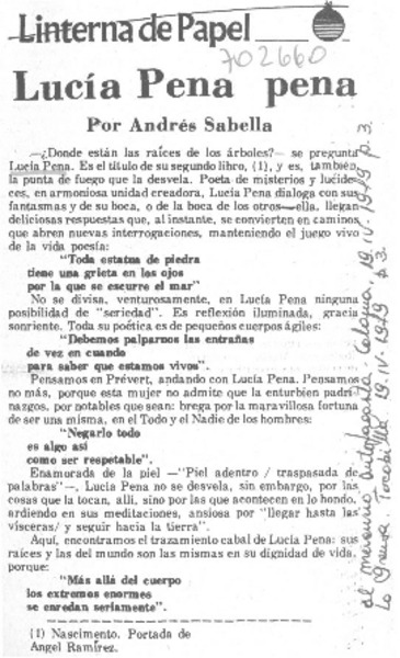 Lucía Pena pena [artículo] Andrés Sabella.
