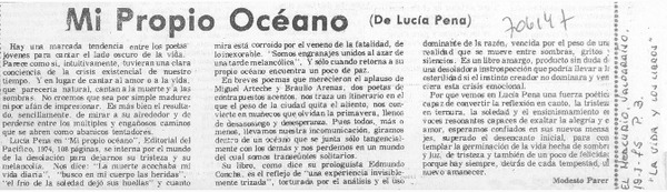 Mi propio océano [artículo] Modesto Parera.