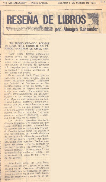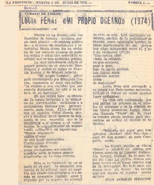 Lucía Pena, "Mi propio océano" [artículo] Juan Antonio Massone.