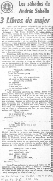 3 libros de mujer [artículo] Andrés Sabella.