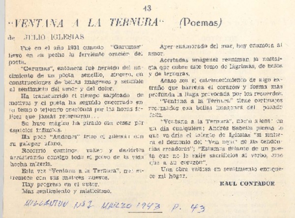 "Ventana a la ternura" [artículo] Raúl Contador.