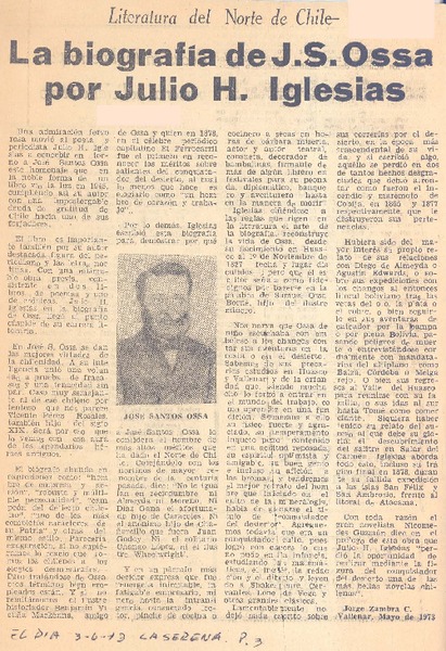 La biografía de J. S. Ossa por Julio H. Iglesias [artículo] Jorge Zambra C.
