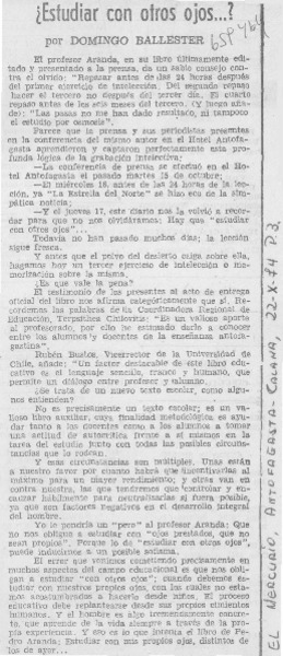 ¿Estudiar con otros ojos--? [artículo] Domingo Ballester.