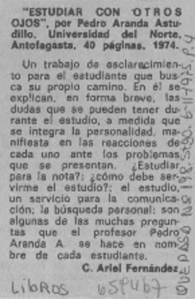 Estudiar con otros ojos - Aranda, Pedro - Autores chilenos