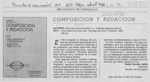 Composición y redacción [artículo] Rosita Garrido Labbé.