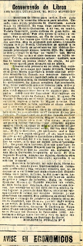 Autoras chilenas - Güiraldes, Ana María - Matte, Ester - Nudo movedizo - Rodeo y otros cuentos - Donoso Brito, María - Eulalia - Lazaeta, Gabriela - Segunda vida