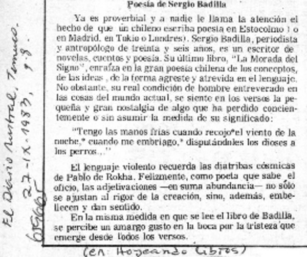 Autores chilenos - Badilla, Sergio - Morada del signo