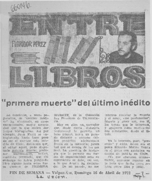 Primera muerte" del último inédito [artículo] Floridor Perez.