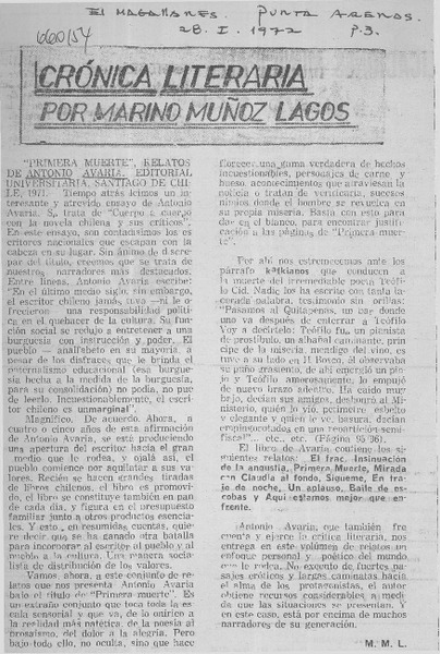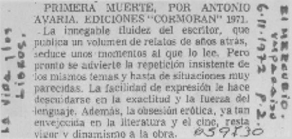 Autores chilenos - Avaria, Antonio - Primera muerte