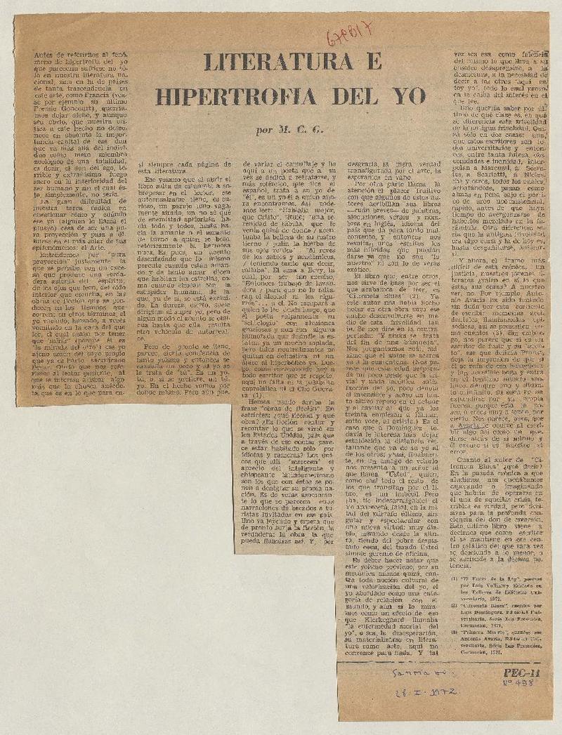 Literatura e hipertrofia del yo [artículo] M. C. G.