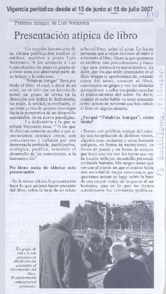 Autores chilenos - Entrevistas - Weinstein, Luis - Palabras amigas