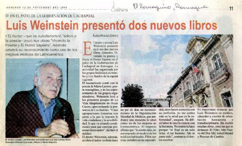 Luis Winstein presentó dos nuevos libros [artículo]Alexis Apablaza Campos.