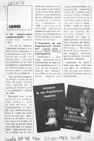 Autores chilenos - Boza D., Cristian - Duval V., Hernán - Aron, Raymond - Inventario de una arquitectura anónima - Observador comprometido