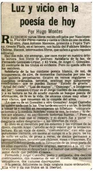 Luz y vicio en la poesía de hoy [artículo] Hugo Montes.