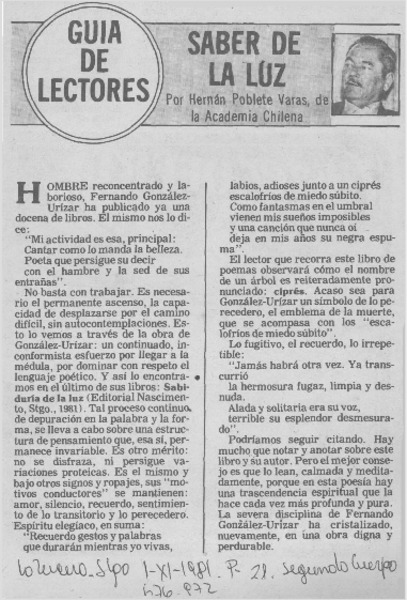Saber de la luz [artículo] Hernán Poblete Varas.