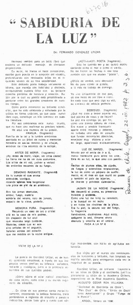Autores chilenos - González-Urizar, Fernando - Sabiduría de la luz