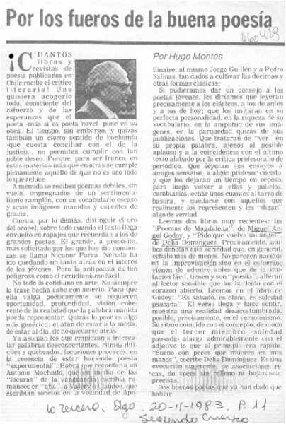 Por los fueros de la buena poesía [artículo] Hugo Montes.