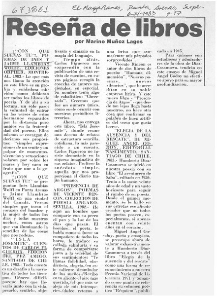 Reseña de libros [artículo] Marino Muñoz Lagos.